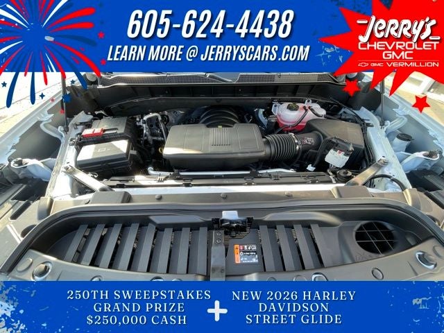 2026 Chevrolet Silverado 1500 4D Crew Cab Polar White Tricoat 4WD EcoTec3 5.3L V8 LTZ 10-Speed Automatic The 2026 Chevrolet Silverado 1500 LTZ is the premium choice for owners who want high-end executive comfort and advanced trailering tech without making the jump to the flagship High Country. It trades the rugged, blacked-out look of the Trail Boss or RST for a classic, sophisticated aesthetic heavy on chrome and leather, 10-Speed Automatic, 4WD, Black Leather, 10-Way Power Driver Seat with Lumbar, 10-Way Power Passenger Seat Adjuster with Lumbar, 12.3 Multicolor Reconfigurable Digital Display, 120-Volt Bed Mounted Power Outlet, 120-Volt Interior Power Outlet, 2 USB Data Ports, 2nd Row Heated Outboard Seats, 6 Rectangular Chrome Tubular Assist Steps, Adaptive Cruise Control, All-Weather Floor Liner, Auto-Dimming Inside Rear-View Mirror, Auto-Locking Rear Differential, Bluetooth® For Phone, Chevytec Spray-on Black Bedliner, Chrome Mirror Caps, Driver Memory, Dual Rear USB Ports (charge Only), Electric Rear-Window Defogger, Front Bucket Seats, Front LED Fog Lamps, Front Rain-Sensing Wipers, Front Rubberized Vinyl Floor Mats, HD Surround Vision, Heated door mirrors, Heated Driver and Front Outboard Passenger Seats, Heated Steering Wheel, Hitch Guidance with Hitch View, in-Vehicle Trailering System App, Integrated Trailer Brake Controller, IntelliBeam Automatic High Beam on/Off, Keyless Open and Start, LED Cargo Area Lighting, LTZ Convenience Package, LTZ Convenience Package II, LTZ Plus Package, OnStar Services Capable, Outside Heated Power-Adjustable Mirrors, Power Sliding Rear Window with Rear Defogger, Power Tailgate, Power Tilt and Telescoping Steering Column, Preferred Equipment Group 1LZ, Premium Bose 7-Speaker Sound System, Rear Cross Traffic Braking, Rear Pedestrian Alert, Rear Rubberized-Vinyl Floor Mats, Rear Wheelhouse Liners, Remote Vehicle Starter System, Safety Alert Seat, Safety Package, SiriusXM with 360L Trial Subscription, Standard Tailgate, Steering Wheel Audio Controls, Teen Driver, Theft Deterrent System (unauthorized Entry), Tire Pressure Monitoring System, Trailer Camera Provisions, Trailer Side Blind Zone Alert, Trailering Package, Ultrasonic Front and Rear Park Assist, Universal Home Remote, Up-Level Rear Seat with Storage Package, Ventilated Driver and Front Passenger Seats, Wheels: 20 x 9 Sterling Silver Painted Aluminum, Wi-Fi Hot Spot Capable, Wireless Charging, Wrapped Steering Wheel, Z71 Off-Road and Protection Package.