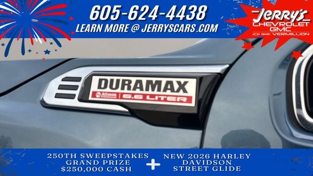 2026 GMC Sierra 2500HD 4D Crew Cab Downpour Metallic 4WD Duramax 6.6L V8 Turbodiesel Denali 10-Speed Automatic The 2026 GMC Sierra 2500HD Denali already sets a high standard for a heavy-duty luxury truck, but opting for the Denali Reserve Package elevates it with an array of advanced features, technology, and premium comfort, 5th Wheel/Gooseneck Prep Package, 10-Speed Automatic, 4WD, Black Leather, 120-Volt Bed Mounted Power Outlet, 120-Volt Instrument Panel Power Outlet, Automatic temperature control, Bose Premium 7-Speaker Sound System, Denali Reserve Package, Driver Memory, HD Surround Vision, Heated 2nd Row Outboard Seats, Heated door mirrors, Heated steering wheel, Hill Descent Control, Lane Departure Warning System, LED Smoked Amber Roof Marker Lamps, Multicolor 15 Diagonal Head-Up Display, Power Sunroof, Rain sensing wipers, Technology Package, Wireless Charging, Wireless Phone Projection, X31 Off-Road Package.