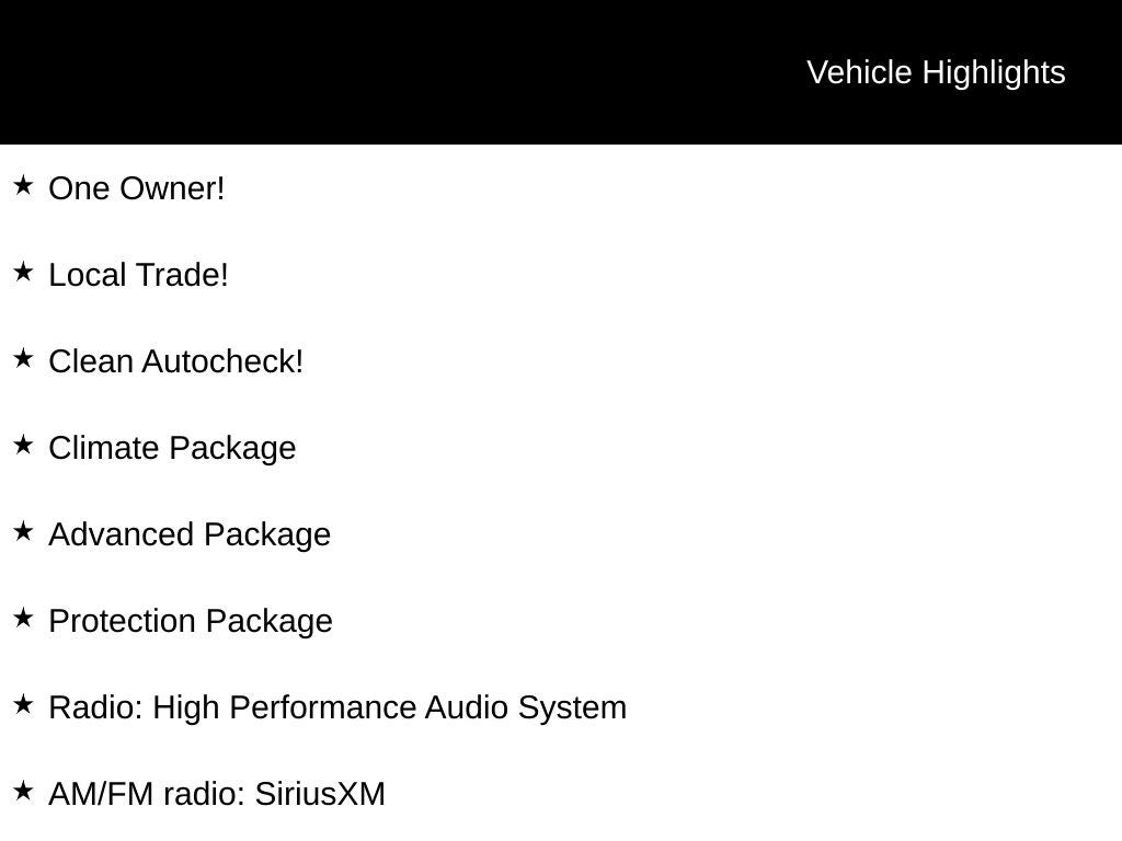 One Owner. One Owner!, Local Trade!, Clean Autocheck!, AWD, Charcoal Premium Synthetic, 360 Degree Surroundview Camera, 3rd row seats: bucket, 4-Wheel Disc Brakes, Advanced Package, AM/FM radio: SiriusXM, Auto High-beam Headlights, Auto-dimming door mirrors, Brake assist, Bumpers: body-color, Cargo Tray, Climate Package, Delay-off headlights, Dual front impact airbags, Dual front side impact airbags, Electronic Stability Control, Exterior Parking Camera Rear, Four wheel independent suspension, Front anti-roll bar, Front dual zone A/C, Front fog lights, Fully automatic headlights, Garage door transmitter: HomeLink, Graphical Head-Up Display, Headlight cleaning, Heated front seats, Heated Rear Seats, Heated Steering Wheel, Heated Windshield Wiper Blades, Interior High Level Illumination, Knee airbag, Leatherette Upholstery, Occupant sensing airbag, Overhead airbag, Power door mirrors, Power Liftgate, Power moonroof, Power passenger seat, Power windows, Protection Package, Radio: High Performance Audio System, Rain sensing wipers, Rear anti-roll bar, Rear dual zone A/C, Rear fog lights, Rear window defroster, Rear window wiper, Remote keyless entry, Roof rack: rails only, Rubber Floor Mats, Security system, Sensus Navigation Pro, Speed control, Speed-sensing steering, Split folding rear seat, Telescoping steering wheel, Tilt steering wheel, Traction control, Variably intermittent wipers. 20/28 City/Highway MPG