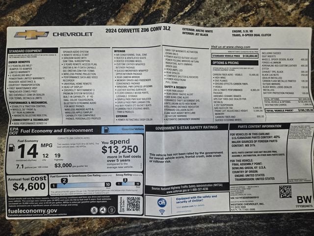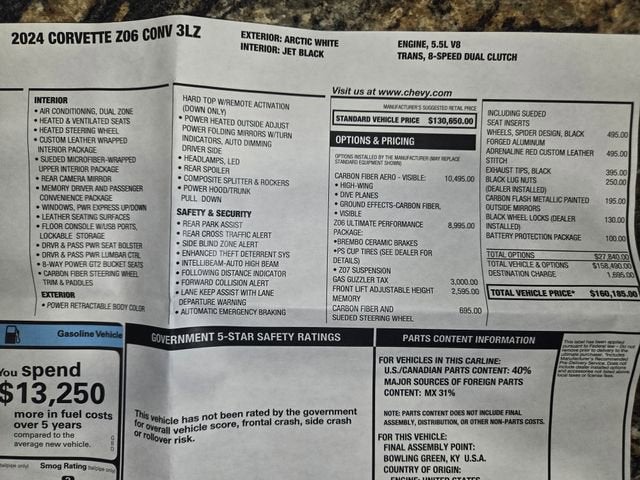 2024 Corvette Z06 Convertible. Arctic White/ Jet Black Nappa Leather w/ Suede Insert Sport Seats/ Arctic White Roof. 670 HP 5.5L Flat Plane Crankshaft V8, 8 Speed Dual Clutch Transmission, Z07 Ultimate Performance Suspension, Magnetic Selective Ride Control Suspension, 3LZ Equipment Group, Heads Up Display, P/ Heated & Ventilated Seats, Bose Performance Series 14 Speaker Audio System w/ NAV & Steering Wheel Controls, Performance Data Recorder, XM Satellite Radio, Onstar, Bluetooth®, Carbon Fiber & Suede Heated Steering Wheel, P/ Tilt & Telescope Steering, GT2 Seating, Adrenaline Red Custom Interior Stitching, Black Seatbelts, Dual Zone Air, Memory, Sueded Upper Interior Trim, Front Lift, Floor Mats, Rearview Mirror Camera, Front Park Assist Camera, Blind Zone Alert, Rear Cross Traffic Alert, P/ Retractable Hardtop, Battery Protection Package, Carbon Flash Metallic Badging, Carbon Flash Metallic Mirrors, Visible Carbon Fiber Ground Effects, Dual Mode Performance Exhaust, Black Exhaust Tips, Dark Gray Brake Calipers, Black Lug Nuts, Gloss Black Forged Spider Design Wheels. MSRP $160,185. Warranty Start Date 5/23/2024. One Owner. Local Trade. Only 925 Miles.Jerrys Chevrolet is proud to be the official sponsor of the Sioux Falls Corvette Club and the 55th Anniversary Black Hills Corvette Classic. Come join us for Corvette Week July 15th-18th 2026.www.blackhillscorvetteclassic.comWith over 50 in stock - We have the largest selection of Corvettes, late model performance cars and collectible cars in the region! Stop by to visit our all new nearly 11,000 sq. ft. Corvette and Collector Car Showroom located in Beresford, SD.Please contact Barry Konken at (605) 957-3038 for more information about these outstanding cars.Dreams Delivered Daily!